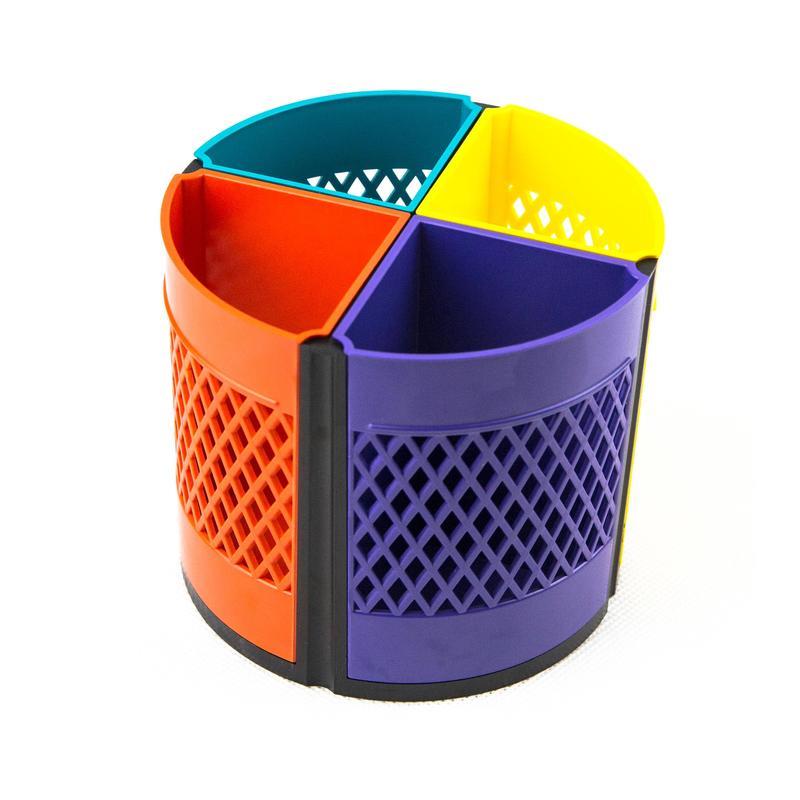 Компактная и эргономичная подставка-трансформер Attache «Квартет» радуга без наполнения. В зависимости расположения лотков, количество отделений составляет от четырех до восьми. Вращается на 360 градусов. Изготовлена из ударопрочного полистирола.