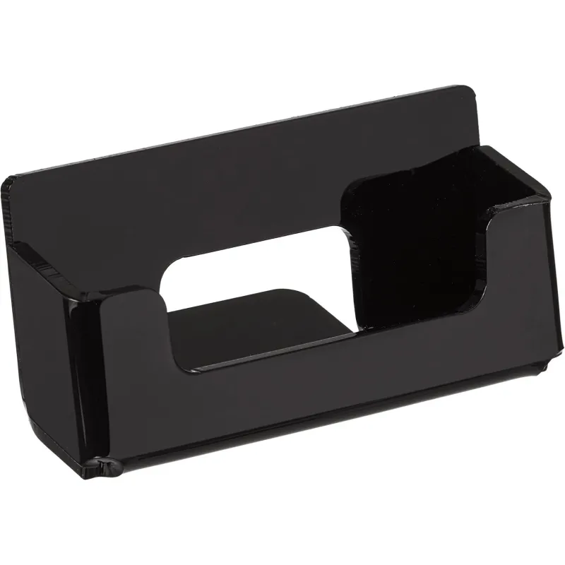 Горизонтальная односторонняя настольная подставка Комус. Предназначенная для хранения собственных визиток, изготовлена из акрила черного цвета. Изделие размером 95x20 мм имеет одно отделение. Размеры (ВxШxГ): 40х98х44 мм. Поставляется в защитной пленке, перед применением снять.