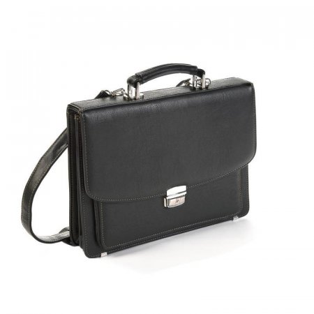 Портфель Директ 131/2 выполнен из искусственной кожи черного цвета.