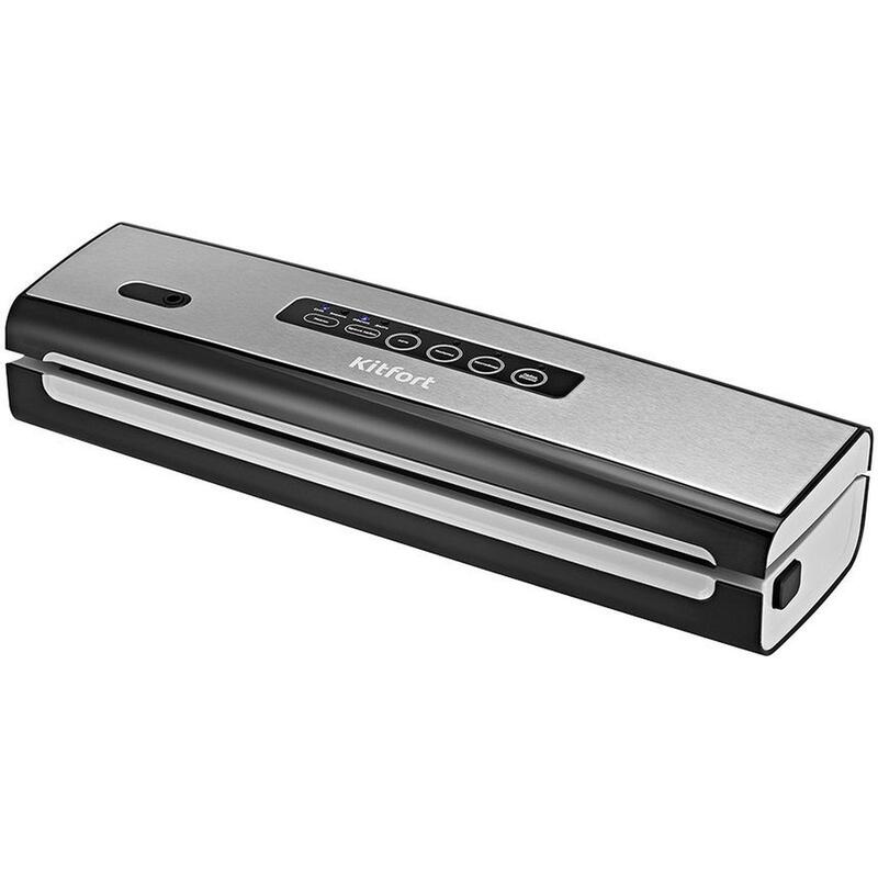 Вакуумный упаковщик Kitfort КТ-1510Вакуумный упаковщик КТ-1510 — современный прибор, призванный увеличить сроки хранения пищевых продуктов. Продукты, упакованные под вакуумом, сохраняют свежесть и не портятся существенно дольше по сравнению с обычными условиями хранения.Вакууматор очень прост в использовании: открытый край пакета укладывается под крышку прибора, после чего вакууматор начинает выкачивать из него воздух. В результате образования вакуума пакет плотно обжимает содержимое. Как только воздух удален, начинается запечатывание открытой стороны пакета.У вакууматора есть все необходимые функции:’Авто’ - откачает воздух из пакета, а затем запаяет его;’Импульс’ - откачивает воздух, пока вы держите кнопку нажатой;’Контейнер’ - откачивает воздух из контейнеров.В режиме ’Контейнер’ вакуумирование происходит при помощи шланга, вставленного в фитинг вакууматора одним концом, а другим — в фитинг крышки контейнера. Также на панели управления есть режим ’Сухо/Влажно’ для запечатывания сухих или влажных продуктов. Влажные продукты могут намочить край пакета, поэтому время запечатывания пакетов увеличено.Для обеспечения надежности при выкачивании воздуха вакууматор плотно закрывается. Чтобы открыть устройство, нажмите одновременно боковые кнопки, которые закрепляют положение крышки при выкачивании воздуха.В комплектации с вакууматором есть 5 пакетов размерами 22×30 см, шланг для откачки воздуха из контейнеров и резак, который поможет вам отрезать пакет нужной длины и удалить шов после запечатки пакета.Вакууматор Kitfort КТ-1510 — идеальный вариант для долгого и бережного хранения продуктов! Внешний вид и/или характеристики товара могут быть изменены производителем в соответствии с производственным процессом.