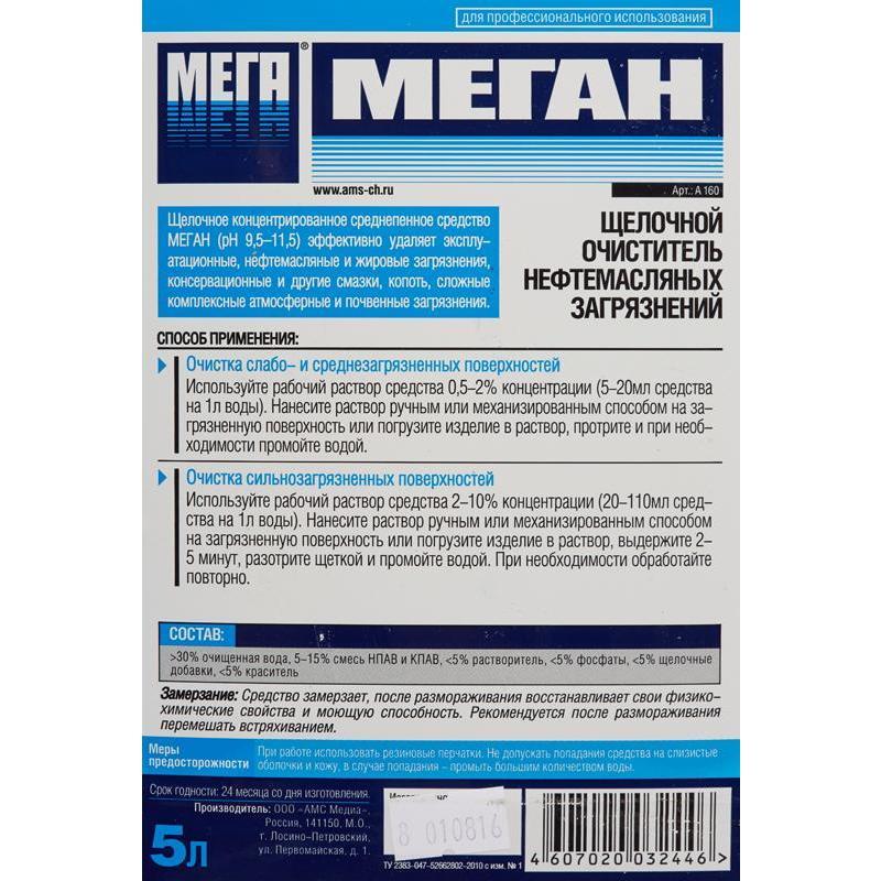 Средство для очистки различных твёрдых поверхностей, деталей машин и механизмов, транспорта, ручной и машинной мойки любых наливных, бетонных и полимерных полов, керамической плитки, линолеума, натурального и искусственного камня, любых металлов и др. Средство эффективно удаляет эксплуатационные, нефтемасляные и жировые загрязнения, консервационные и другие смазки, копоть, сложные комплексные атмосферные, почвенные и дорожные загрязнения. ОСОБЕННОСТИ:- Обладает высокой моющей и проникающей способностью- Эффективно против различных сложных загрязнений- Среднепенное, подходит для поломоечных машин- Эффективно в воде любой жесткости и температурыРЕКОМЕНДАЦИИ ПО ПРИМЕНЕНИЮ:Очистка слабо- и среднезагрязненных поверхностей (ручная и механизированная) Используйте рабочий раствор средства 0,5-2% концентрации (5-20мл средства на 1л воды). Нанесите раствор ручным или механизированным способом на загрязненную поверхность или погрузите изделие в раствор, протрите и при необходимости промойте водой.Очистка сильнозагрязненных поверхностей (ручная и механизированная)Используйте рабочий раствор средства 2-10% концентрации (20-110мл средства на 1л воды). Нанесите раствор ручным или механизированным способом на загрязненную поверхность или погрузите изделие в раствор, выдержите 2-5 минут, разотрите щеткой и промойте водой. При необходимости обработайте повторно.