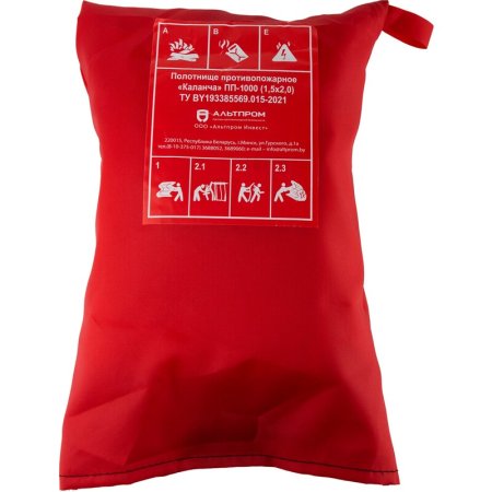 Полотно противопожарное Русарсенал ПП-1000 (1.5×2.0 м) предназначено для тушения локальных очагов возгораний на начальной стадии. Размер составляет 1,5×2 м. Оно выполнено из стекловолокна повышенной плотности. Температура горения не должна превышать 1000°C.