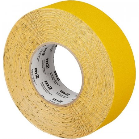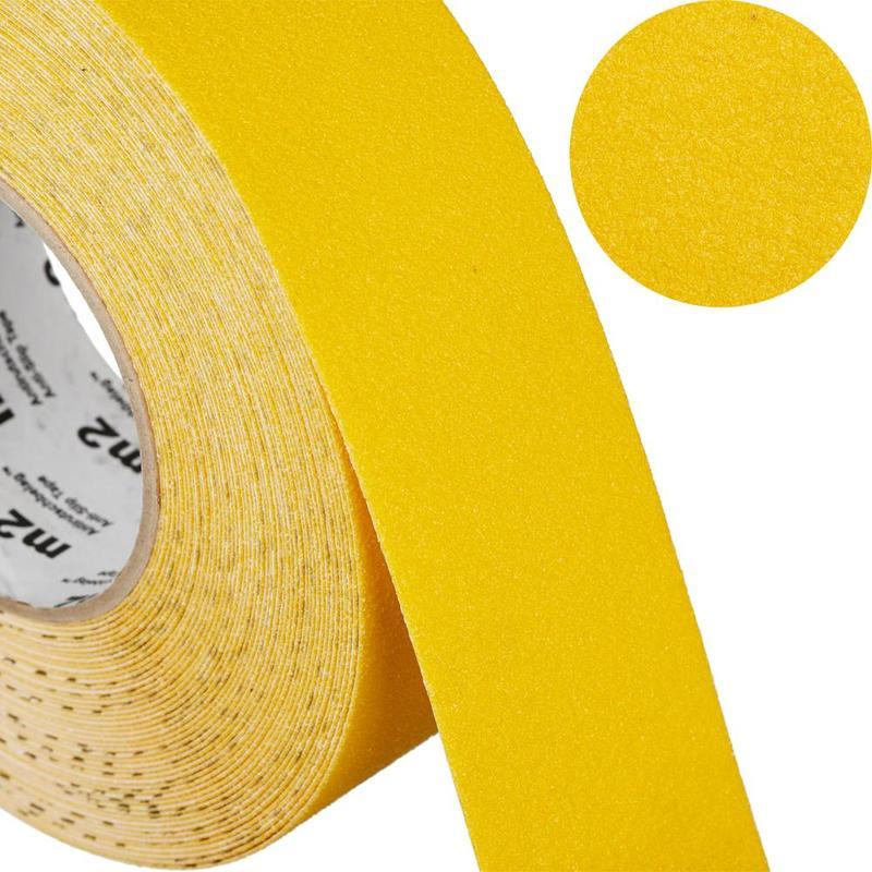 Лента противоскользящая Мельхозе 50 мм х 18.3 м желтая. Противоскользящее покрытие с зерном из оксида алюминия, основа из ПВХ, самоклеящаяся сторона с защитной лентой для защиты клеевого слоя, акриловый клеевой слой, толщина без защитной пленки <1 мм. Крупность зерна 60.