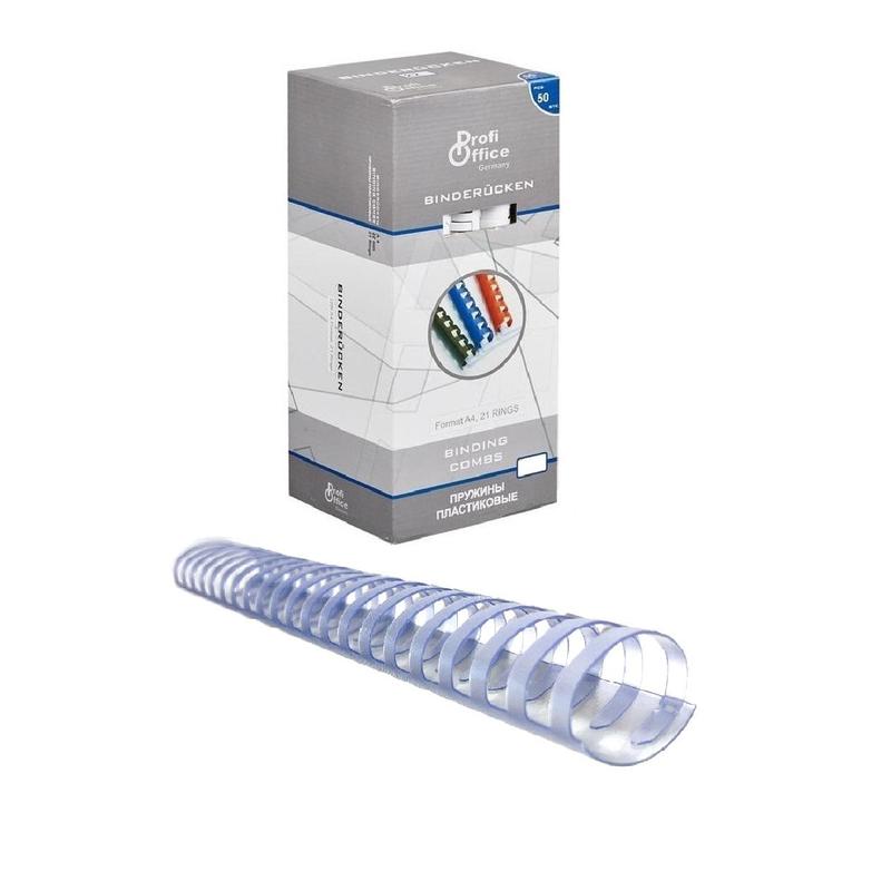 Пластиковые пружины прозрачного цвета, диаметр 51 мм, 50 штук в упаковке для брошюровщиков ProfiOffice. Преимущество брошюровщика, работающего с пластиковыми пружинами — возможность скорректировать уже готовый документ. Если случайно перепутали страницы, хотите убрать или добавить информацию, переплет можно раскрыть, вынуть листы и заново собрать брошюру. Таким же образом можно повторно использовать пружины уже ненужных бумаг. Пластиковые пружины могут многократно разжиматься без ухудшения качественных свойств.