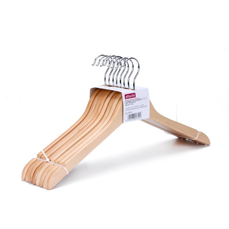 Набор из восьми деревянных классических вешалок со специальными прорезями для юбочных петель будет долго служить Вам, защищая вещи от преждевременного износа и сохраняя их внешний вид. Ширина плечиков — 44,5 см, толщина — 1,2 см. Металлический крючок имеет возможность вращения. Поставляется по 8 штук в упаковке.