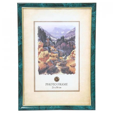 Материал багета: пластик. Материал вставки: стекло. Материал задника: картон. Толщина багета: 16 мм. Ширина багета: 23 мм. Цвет багета: малахит. Вставка съемная. Тип размещения: настенный. Тип крепления задника: лепестки. Размер фото: 21x30 см. Размер изделия: 23x32 см. Упаковка: пленка.
