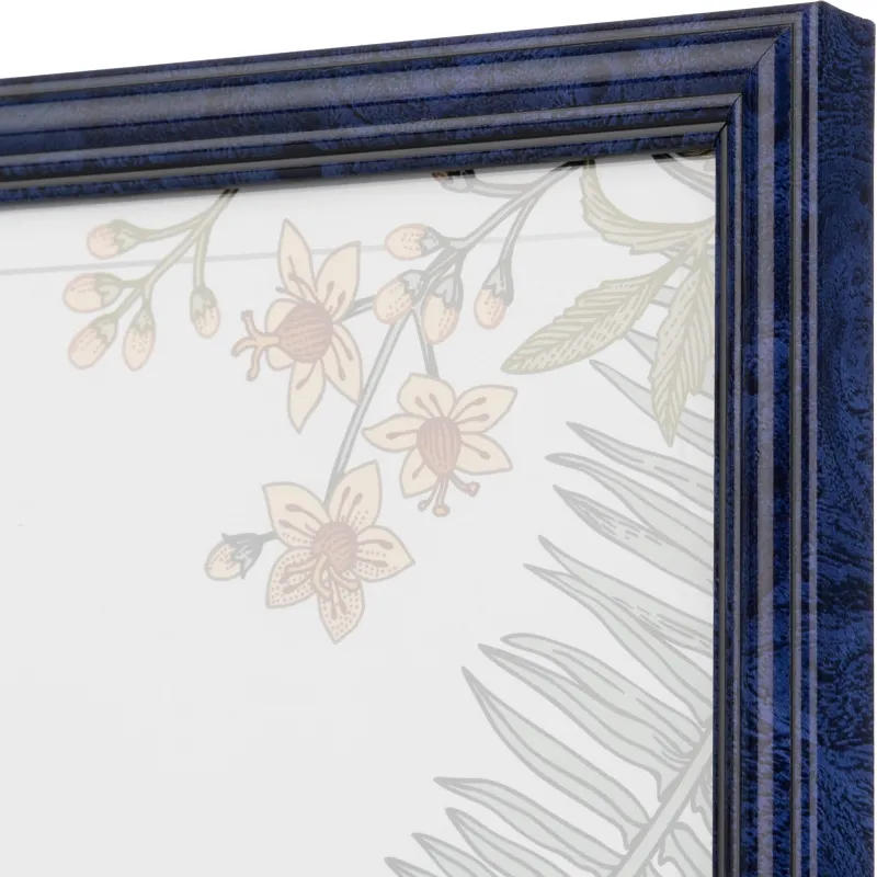 Материал багета: пластик. Материал вставки: стекло. Материал задника: картон. Толщина багета: 16 мм. Ширина багета: 14 мм. Цвет багета: синий. Вставка съемная. Тип размещения: настенный. Тип крепления задника: лепестки. Размер фото: 21x30 см. Размер изделия: 23x32 см. Упаковка: пленка.