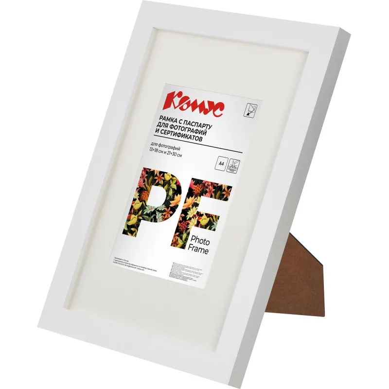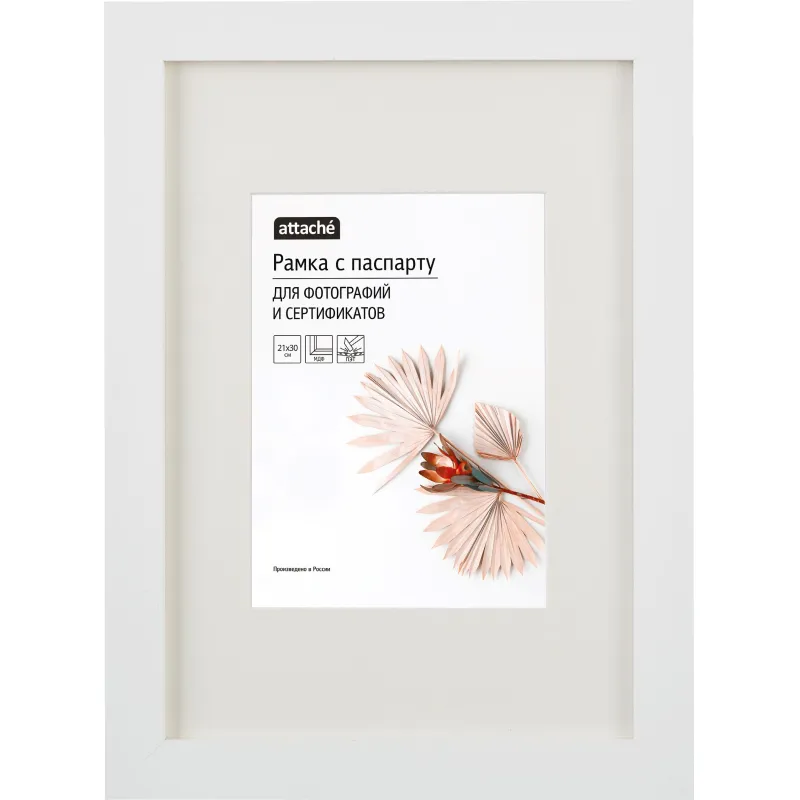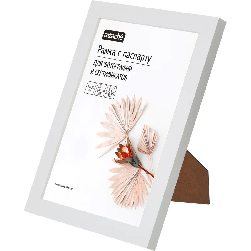 Рамка с паспарту Attache А4 21?30 см пластик багет 18 мм белый. Комплектация рамки:Размер изображения: 21?30 см; Основной материал: пластик; Задник: картон;Цвет багета: белый. Комплектация: ножка-подставка для настольного размещения. Тип упаковки: термоусадочная пленка. Страна производитель: Россия.