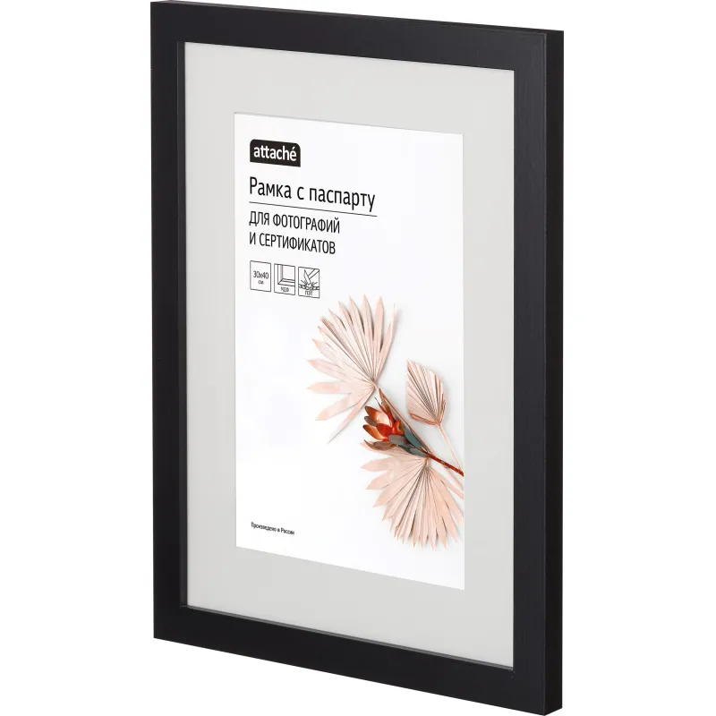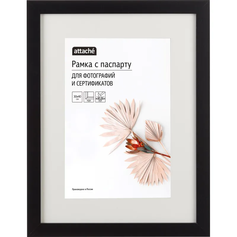 Рамка с паспарту Attache А3 30?40 см пластик багет 18 мм черный. Комплектация рамки:Размер изображения: 30?40 см; Основной материал: пластик; Задник: картон;Цвет багета: черный. Комплектация: ножка-подставка для настольного размещения. Тип упаковки: термоусадочная пленка. Страна производитель: Россия.