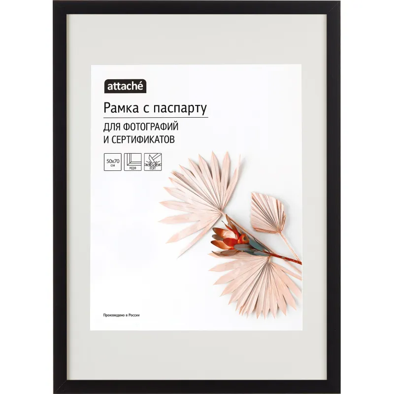 Рамка с паспарту Attache 50?70 см пластик багет 18 мм черный. Комплектация рамки:Размер изображения: 50?70 см; Основной материал: пластик; Задник: картон;Цвет багета: черный. Комплектация: ножка-подставка для настольного размещения. Тип упаковки: термоусадочная пленка. Страна производитель: Россия.