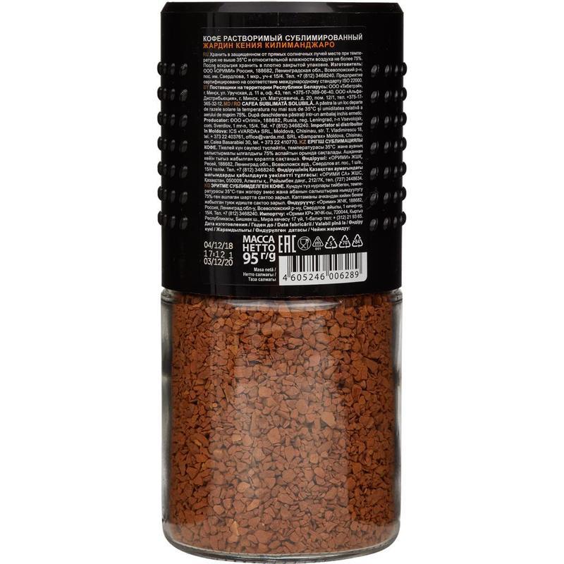 Кофе растворимый сублимированный Jardin Kenya Kilimanjaro 95 г — один из самых известных растворимых кофейных напитков! Его богатый, насыщенный аромат и глубокий вкус невозможно ни с чем перепутать, но так легко узнать из множества вариантов. Jardin Kenya Kilimanjaro создает особую, приятную атмосферу, окружая волнующим ароматом и благородным вкусом.