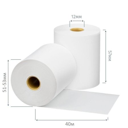 Чековая лента изготовлена из термобумаги. Бумажное полотно с наружным термослоем имеет ширину 57 мм и общую длину 40 метров. Диаметр намотки — 51–53 мм, диаметр втулки — 12 мм. Поставляются в термоусадочной пленке и гофрокоробах. Ролики для термопечати используются в кассовых аппаратах и калькуляторах со встроенным или внешним термопринтером. Цвет печати — черный.