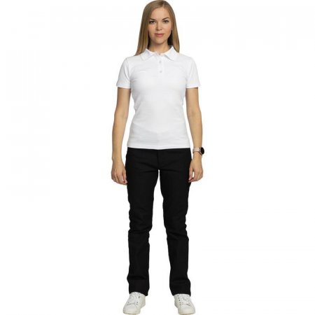 Рубашка поло с коротким рукавом женская. Цвет: белый. Размер: XXL, 52. Ткань: 95% хлопок, 5% лайкра. Плотность: 200 г/кв.м. Страна производства: Россия.