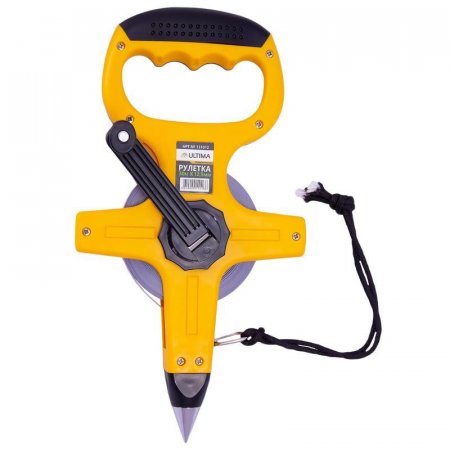 Корпус рулетки из ударопрочного пластика. Двухкомпонентная ручка обеспечивает удобный захват. Имеет заострённый наконечник для фиксации рулетки в почве при проведении длинномерных измерений. Измерительная лента защищена полимерным покрытием, стойким к абразивному воздействию. Цена деления — 1 мм. Класс точности — 2. Предназначена для измерения размеров и расстояний.