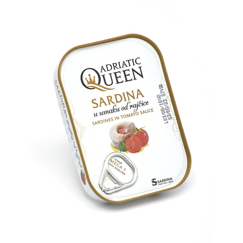 Сардины Adriatic Queen изготовлены из тщательно отобранной рыбы, выловленной в адриатическом море. Сардины в томатном соусе идеально подходят для любителей сочетать разные вкусы. Могут выступать в качестве самостоятельной закуски, а также использоваться в составе других блюд. Сардины являются богатым источником белка, содержат большое количество полезных микроэлементов, антиоксидантов, комплекс витаминов групп A, B и D, а Омега-3, в большом объеме содержащаяся в сардинах, укрепляет сердечно-сосудистую систему и позволяет снизить уровень плохого холестерина. Состав: сардины (Sardina pilchardus), томатный соус (вода, томатная паста, сахар, соль морская пищевая, растительные масла (соевое, подсолнечное, рапсовое), пшеничная мука. Пищевая ценность: белки — 14,7 г, жиры — 5,7 г, углеводы — 4,1 г. Энергетическая ценность: 531 кДж, 126 ккал. Срок годности: 2190 дней.Хранить при температуре от +2°C до +25°C. Страна производства: Хорватия.