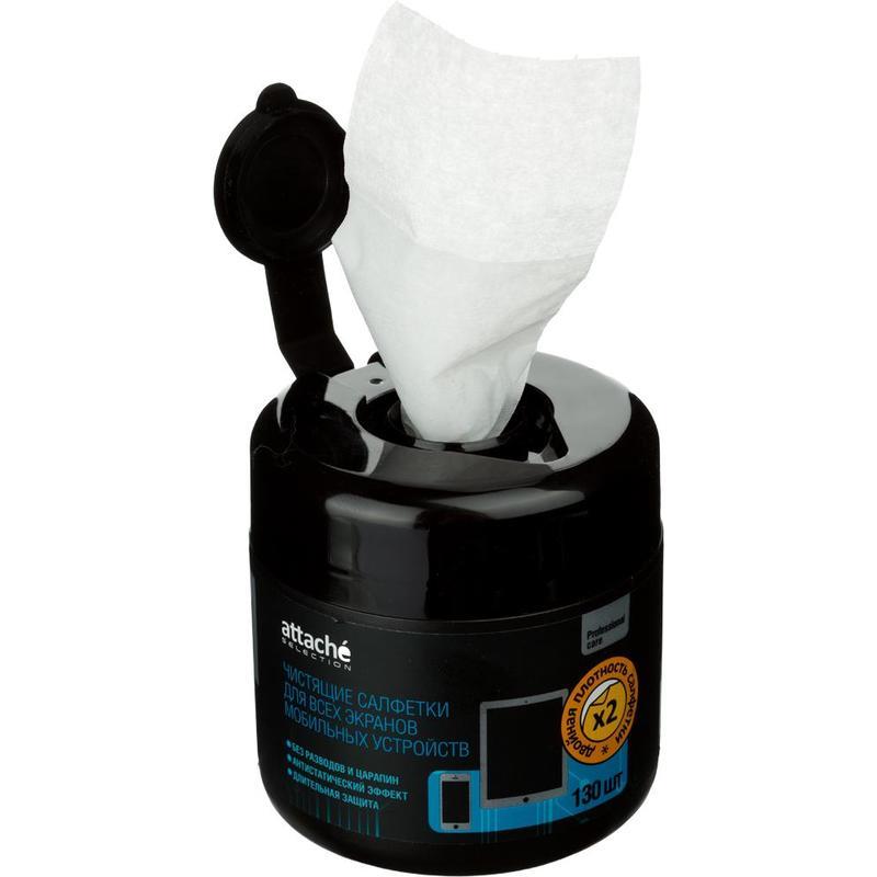 Влажные салфетки Attache Selection изготовлены из крепированной бумаги повышенной плотности, предназначены для очистки всех видов экранов мобильных устройств. Не оставляют разводов и ворса, обладают длительным антистатическим эффектом. Специальный состав с активными компонентами пролонгированного действия безупречно очищает поверхности от пыли и грязи, безопасен для кожи рук. Минитуба-диспенсер с большой крышкой-дозатором препятствует высыханию салфеток, компактна, удобна в поездках. Салфетки изготовлены из полностью биоразлагаемого материала. Материал повышенной плотности (40 г/кв. м) более эффективно очищает поверхность, исключает вероятность обрыва салфеток при вытаскивании. Размер одной салфетки: 55x105 мм — оптимален для очистки экранов мобильных устройств и увеличивает срок использования одной тубы. В тубе 130 штук.