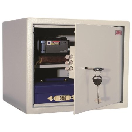 Сейф мебельный Aiko Т-28. Предназначены для хранения незначительных ценностей, документов и т.д. в домашних условиях. Комплектуется ключевым замком. Полка съемная. — устойчивость к взлому — ГОСТ Р 50862-2005, класс НО;— толщина лицевой панели — 3 мм; — толщина металла корпуса 1,5 мм; — замок — 1 ключевой; — количество полок — 1; — тип покрытия — порошковое; — цвет — оттенок серого с эффектом молотковой эмали; — возможность анкерного крепления к полу и к стене. Дополнительные элементы (папки, кэшбоксы) в комплект сейфа не входят и заказываются отдельно. Изображения товаров на сайте не могут гарантировать точную цветопередачу.