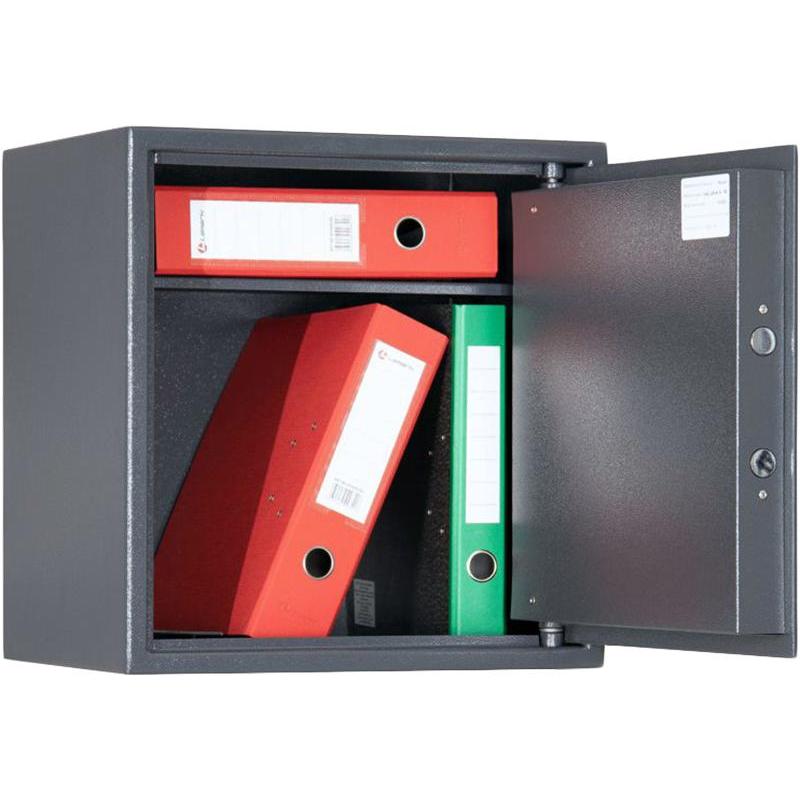 Офисный ШБМ-46 предназначен для хранения бумажных документов. Сейф сертифицирован по ГОСТ Р 55148-2012. Корпус сейфа толщиной 2 мм, дверь толщиной 5 мм. На задней стенке и в днище корпуса расположены отверстия для крепления. Сейф односекционный, оснащен съемной полкой и трейзером. В двери установлен ключевой сувальдный замок «Border», класс А. Диаметр ригеля 24 мм. Дополнительные элементы (папки, кэшбоксы) в комплект сейфа не входят и заказываются отдельно. Изображения товаров на сайте не могут гарантировать точную цветопередачу.