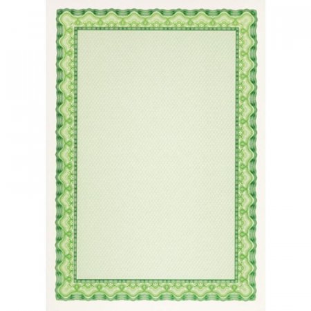 Сертификат-бумага Decadry DC-OSD4054, предназначенная для изготовления сертификатов и профессиональных дипломов. Гладкая поверхность с однородной структурой снабжена микропечатями и водяными знаками. Лицевая сторона украшена рамкой зеленого цвета. В упаковке содержится 25 листов стандартного формата A4.