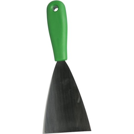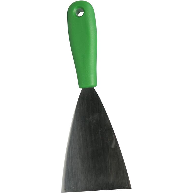 Ручной скребок из нержавеющей стали готов отскребать/соскабливать любые загрязнения с различных поверхностей, в том числе на предприятиях по производству пищевых продуктов и напитков, сектора HoReCa и в клининге. С рукояткой. Соответствует требованиям ХАССП. Выдерживает температуры от −20°С до 100°С. Допустимо автоклавирование при температуре 120°С. Химостойкая.Материал: основание — полипропилен; рабочая часть — нержавеющая сталь. Размеры инвентаря: 84×98 мм.