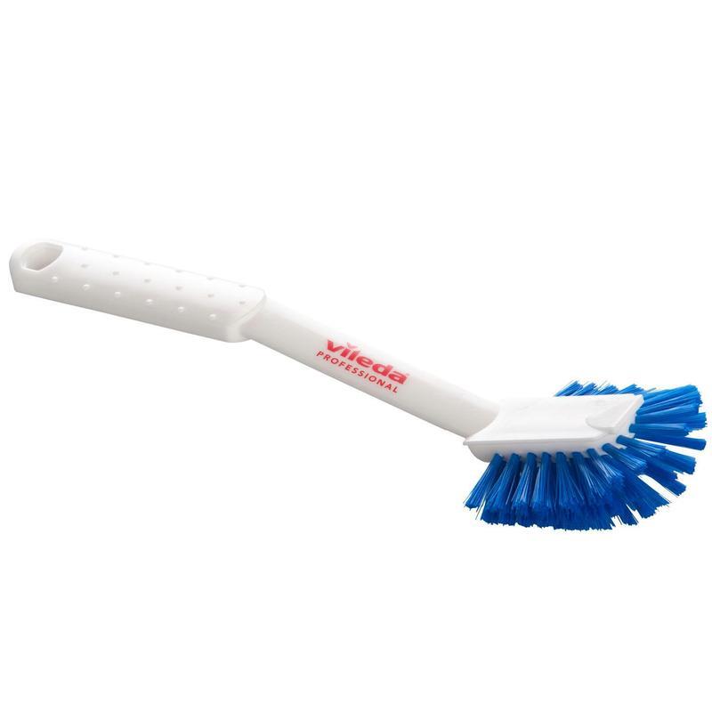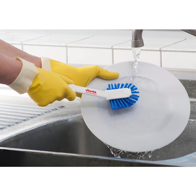 Щетка для мытья посуды. Щетка для удаления остатков пищи с посуды перед мытьем в посудомоечной машине. Щетка устойчива к механическому истиранию. Не теряет жесткости во влажном виде, не подвержена ржавчине, легко очищает въевшуюся грязь. Соответствует международному стандарту гигиены пищевых производств ХАССП. Возможное автоклавирование при температуре до + 134 гр. С Состав: каркас — полипропилен, щетина — полибутилентерефталат (PBT), скобки для крепления щетины — нейзильбер (сплав меди (60%) с никелем (20%) и цинком (20%). В упаковке 6 шт.