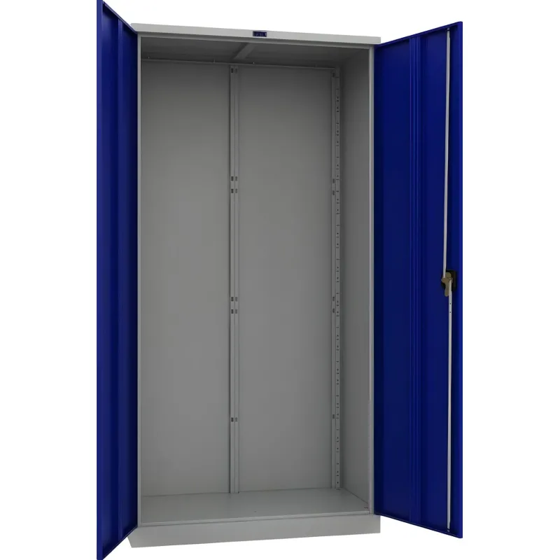 Корпус выполнен в сером полуматовом цвете (RAL 7038), двери — синие (RAL 5002). Тип покрытия — порошковое. Поставляется в разобранном виде.