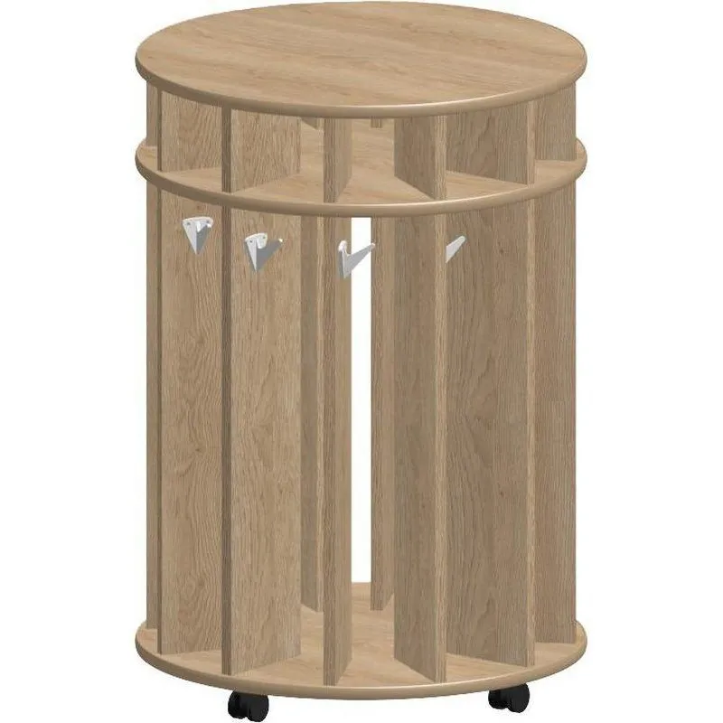 Полотеничница 12-секционная на колесах предназначена для туалетных комнат дошкольных учреждений. В каждой секции-ячейке расположен крючок для полотенца и полочка для расчески или стаканчика. Используемые материалы ЛДСП толщиной 16 мм со стойким покрытием против воздействия воды и моющих, дезинфицирующих средств, защищенное противоударной кромкой ПВХ (Т16-2 мм).