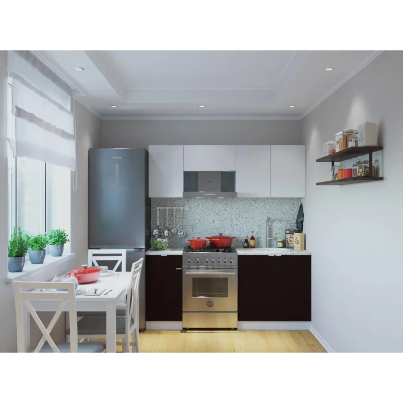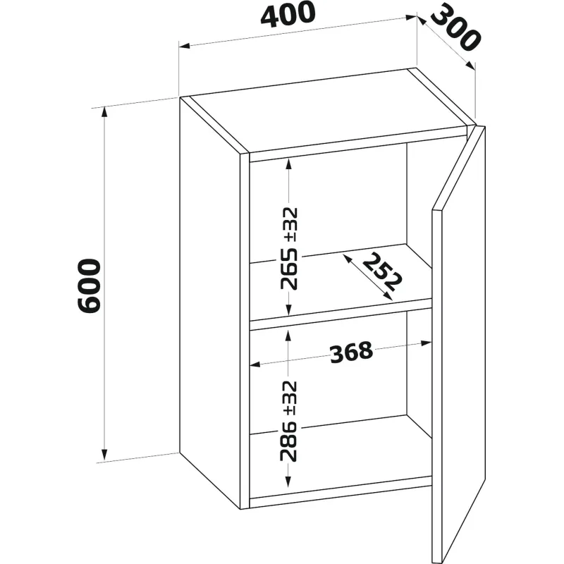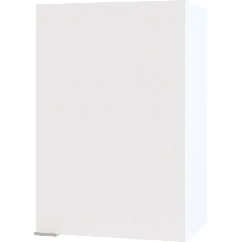 Кухонный настенный шкаф с полкой внутри. Дверь можно навесить на любую сторону. Шкаф сделан из ЛДСП 16 мм, края обработаны кромкой ПВХ 0,4 мм. Ручка — металл.