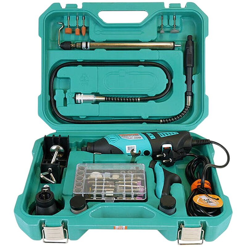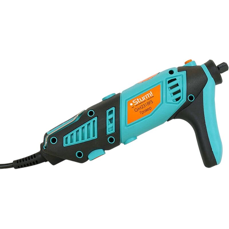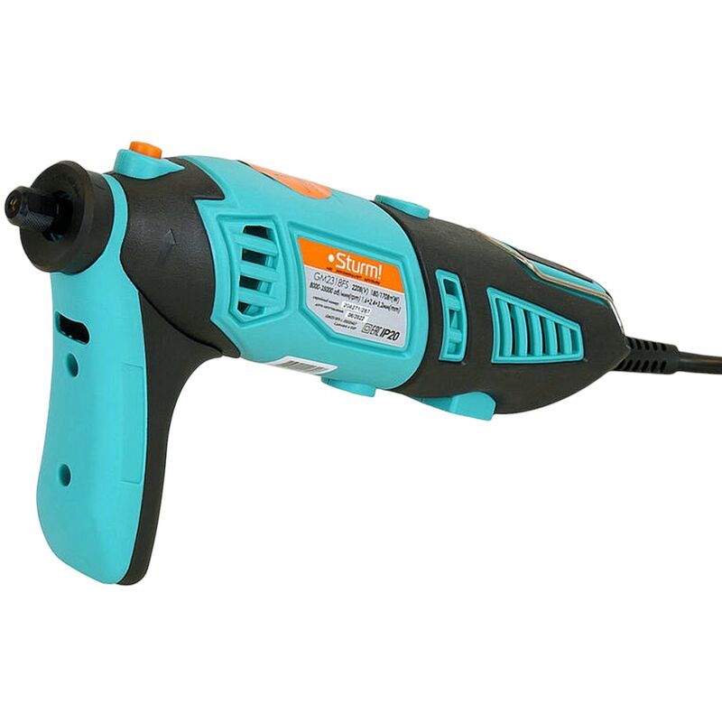 Электрический гравер Sturm GM2318FS — маневренное универсальное устройство для широкого спектра работ: резка, сверление, полирование, гравирование, шлифование, фрезерование различных материалов: металл, дерево, камень, стекло, пластмасса и т.д. Высокоточная цифровая настройка оборотов с ЖК-дисплеем позволит подобрать требуемую скорость под отдельную задачу. Также данная модель предоставляет возможность установки цанг трех различных диаметров 1,6/2,4/3,2 мм, что допускает применение большого множества отличных насадок. Для быстрой и удобной смены оснастки есть кнопка блокировки шпинделя.
