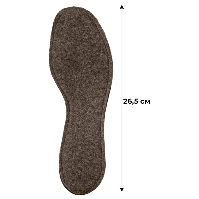 Стелька вкладная из войлока (100% шерсть), дублированная нетканым материалом. Размер: 41. Длина: 26.5 см.