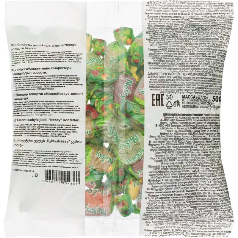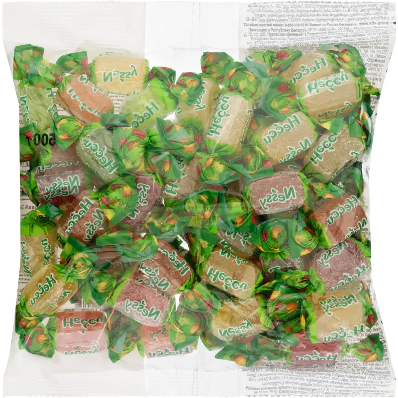 Ассорти вкусов: яблоко, малина, клубника, апельсин, лимон и груша. В сахарной посыпке. На пектине - природном загустителе.