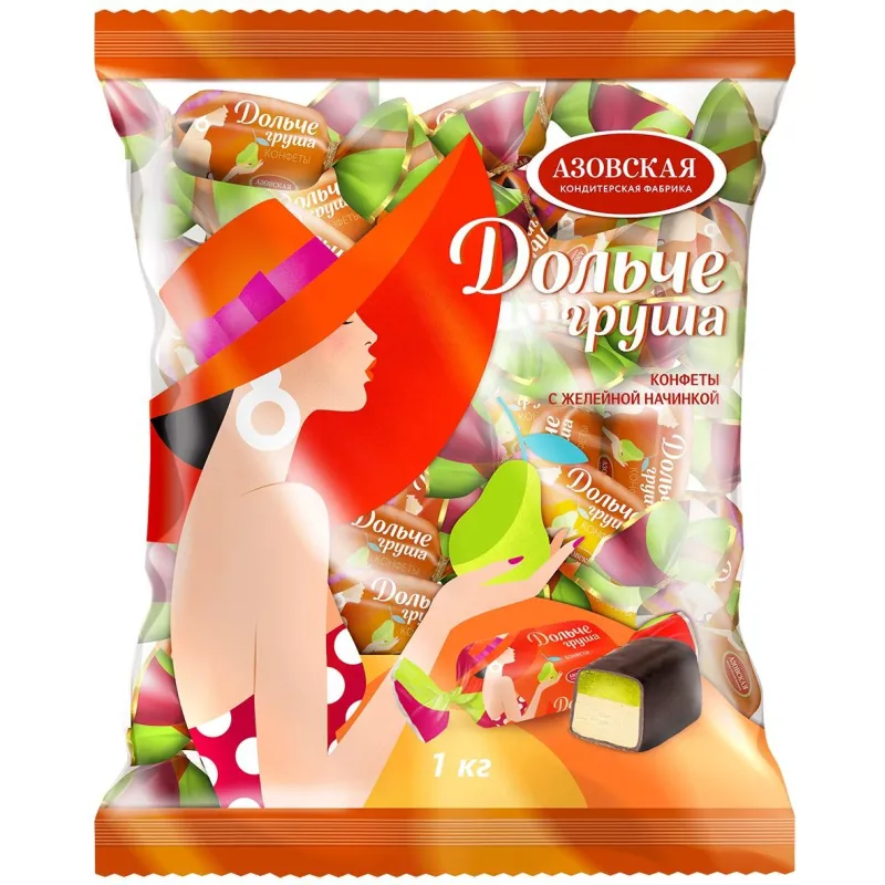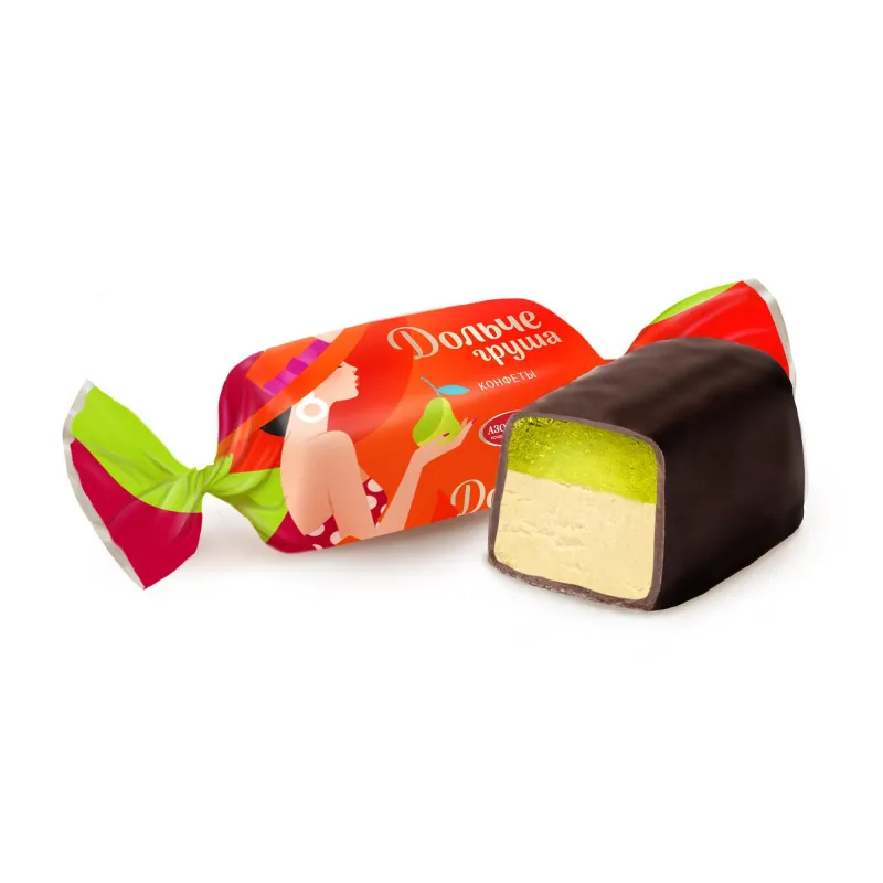 какао-порошок, эмульгаторы: лецитин соевый, Е476, ароматизатор 'Ванилин'), патока, вода питьевая, пюре яблочное, агент влагоудерживающий сорбитовый сироп, спирт этиловый ректификованный, агент желирующий пектин, сахароза, стабилизатор (Е452i), ароматизатор 'Груша Дюшес', регуляторы кислотности: лимонная кислота, цитрат натрия, консерванты: бензойная кислота, сорбиновая кислота.