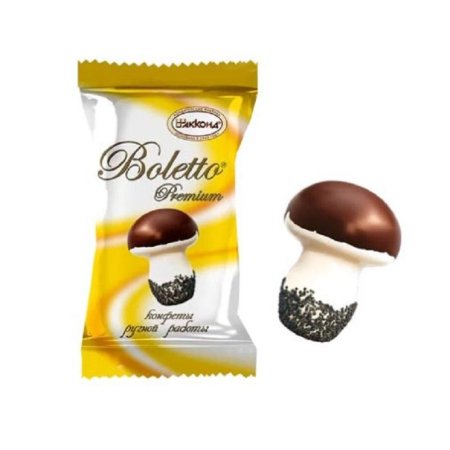 Конфеты шоколадные Акконд Болетто 1.5 кг. Состав: патока, сливочное масло, шоколад (сахар, масло какао, какао-порошок, тертое какао, эквивалент масла какао, эмульгатор: лецитин, идентичный натуральному ароматизатор: 'ванильный'), сахар, сгущенное с сахаром молоко, белок яичный, мак пищевой, желеобразователь: агар, идентичный натуральному ароматизатор: 'ванилин', консервант: сорбиновая кислота.Энергетическая ценность: 441 ккал. Пищевая ценность: белки — 2,5 г, жиры — 23 г, углеводы — 56 г. Срок годности: 3 месяца. Хранить при температуре от 15°С до 21°С. Страна производства: Россия.