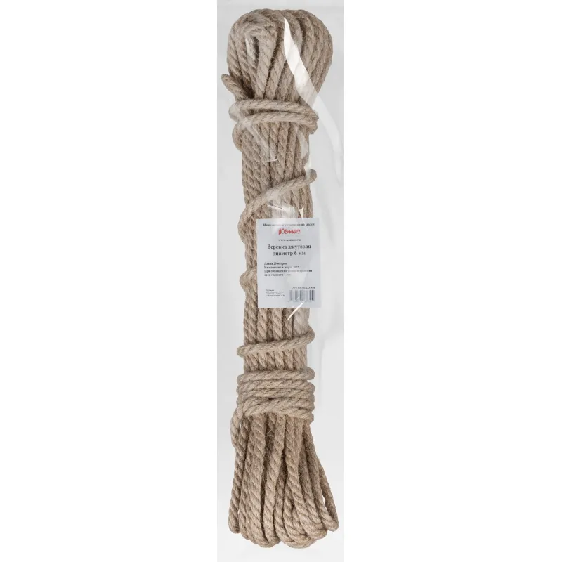 Верёвка джутовая кручёная (6 мм, 20 м). Верёвка джутовая используется в строительстве, а также для поднятия и опускания грузов при строительных работах.