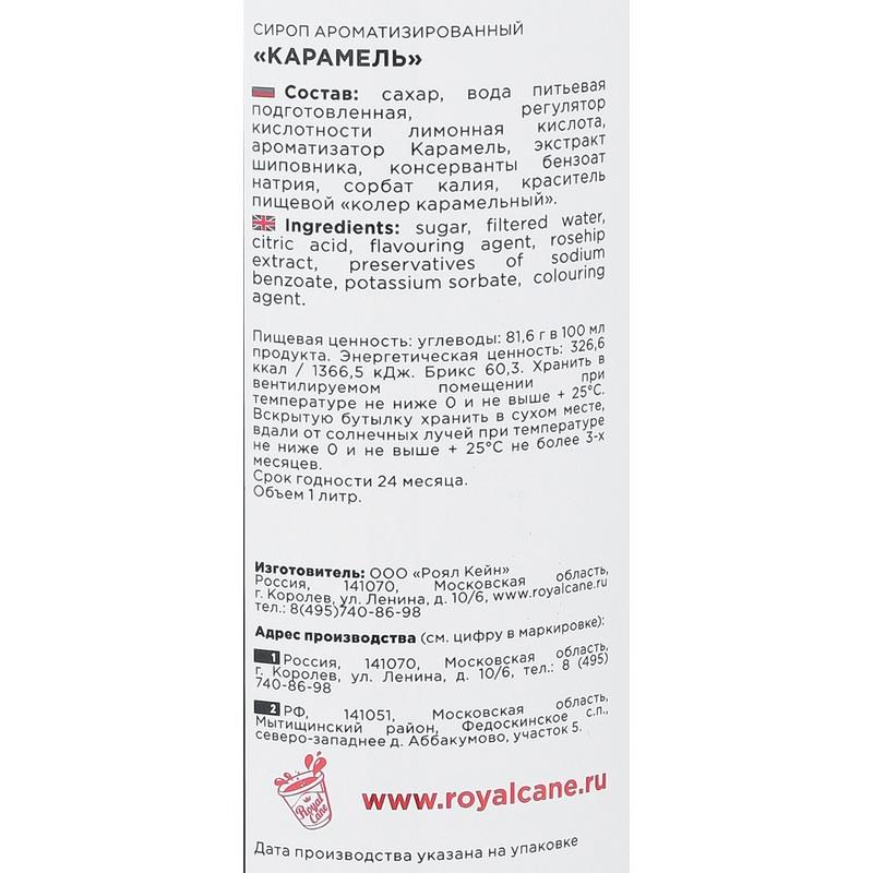 Натуральный сироп Royal Cane Карамель. Если вы хотите придать своему любимому напитку изюминку, то добавьте сироп Карамель, и вы обязательно насладитесь восхитительным вкусом и незабываемым запахом. Сироп рекомендовано добавлять в чай, безалкогольный напиток, кофе, газированный коктейль, лимонад.
