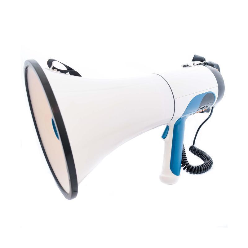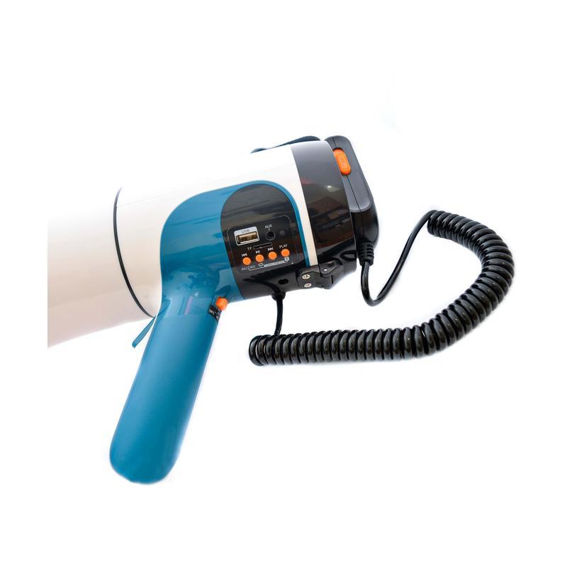 Turbosky ML-01 понравится работникам торговых центров и охранных предприятий. Стильный мегафон белого цвета с голубой ручкой выполнен из ударопрочного пластика ABS. Турбоскай МЛ-01 — надежная и очень качественная модель, которая хорошо защищена от дождя и влаги. Громкий ручной мегафон Turbosky ML-01 имеет диапазон слышимости до 1000 метров. Громкоговоритель ML-01 работает от 8 батарей 12В, типа С. Портативный и мощный, рупор TurboskyML-01 незаменим для путешествий большой дружной компанией. Мегафон Turbosky ML-01 с плеером, воспроизводит файлы формата МП3 с помощью любого устройства, подключенного через USB порт. Так же есть функция записи речи, которая осуществляется на внутреннюю память —TF-карту. Для вашего удобства в комплекте с мегафоном присутствует тангента и плечевой ремешок, что значительно облегчает его использование. Мегафон Turbosky ML-01 оснащен режимом сирены — Переключите голосовой режим в режим тревоги, и у вас есть встроенная сирена, чтобы быстро привлечь внимание каждого. Если звук слишком громкий для гостей — это легко исправить, громкоговоритель имеет регулятор громкости, чтобы вы могли использовать его в помещении и на улице. Громкоговоритель Turbosky ML-01 имеет три способа питания: — Внешний DC12B источник питания — Питание с помощью литиевой батареи — Питание с помощью сухой батареи