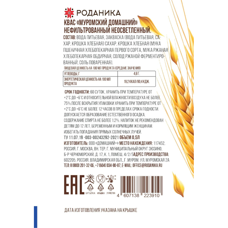 Состав: вода питьевая (подготовленная), закваска (вода питьевая, сахар, крошка сухарная хлебная), сахар, крошка сухарная хлебная (смесь муки пшеничной и ржаной, солод ржаной ферментированный).