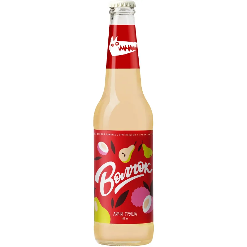 Напиток газированный Волчок личи-груша 0.45 л в стеклянной бутылке (12 штук в упаковке)