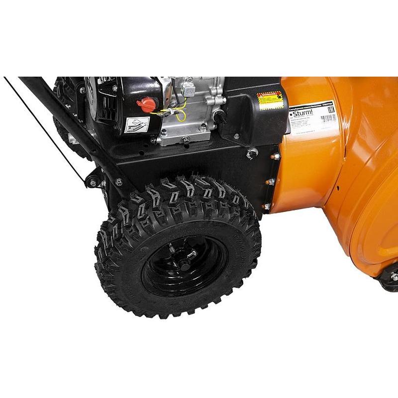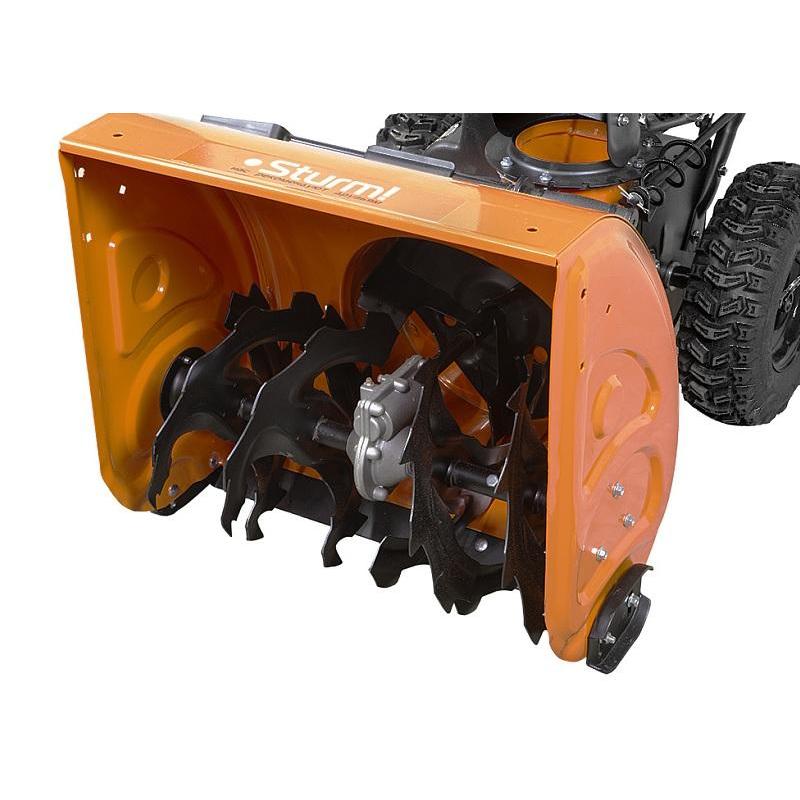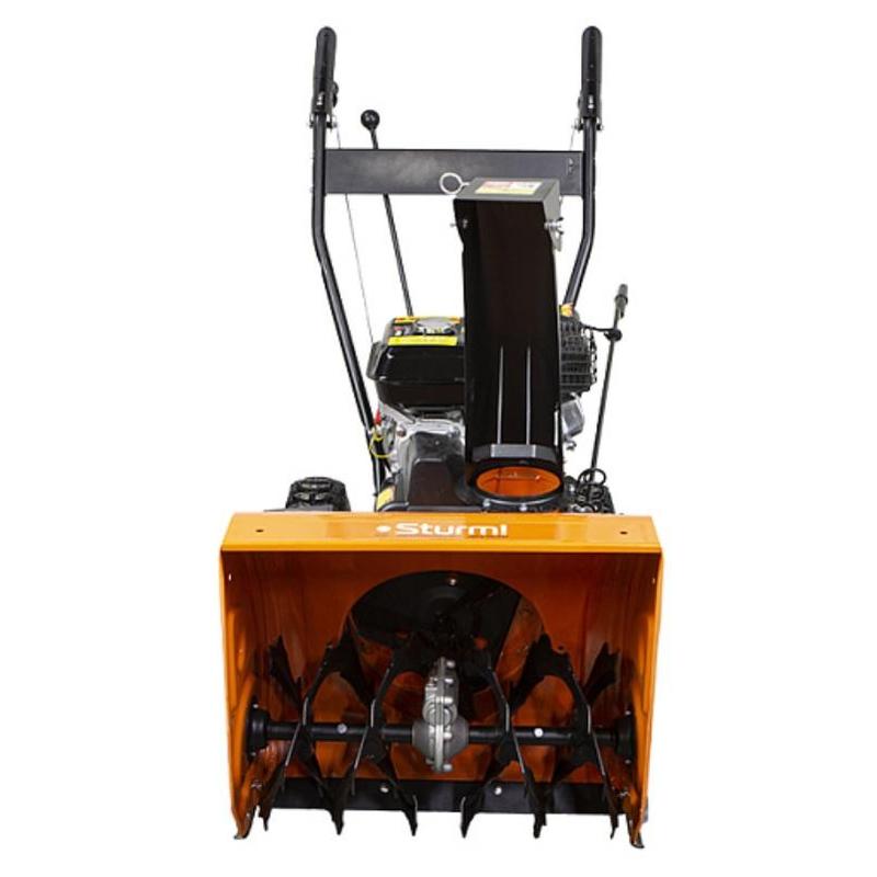 Снегоотбрасыватель Sturm! STG5775R — бензиновая самоходная двухступенчатая снегоуборочная машина, оснащенная зимним вариантом надежного четырехтактного бензинового двигателя модели170 °F. Система управления двигателем обеспечивает его работу в оптимальном диапазоне максимального крутящего момента, что дает хорошую энерговооруженность для выполнения тяжелых работ. «Сухая» гильза цилиндра двигателя из высокопрочного материала обеспечивает долговечность цилиндропоршневой группы.Зазубренный шнек первой ступени успешно измельчает слежавшийся снег и может справиться даже с настом толщиной до 2 см. Высокооборотистая вторая ступень снегоуборочного агрегата отбрасывает снег на расстояние до 12 м. Широкие колеса с развитым анти-снежным протектором позволяют уверенно двигаться по рыхлому снегу.Внешний вид и/или характеристики товара могут быть изменены производителем в соответствии с производственным процессом.