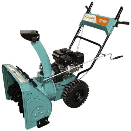 Бензиновый снегоуборщик Sturm! STG7661R это самоходная двухступенчатая снегоуборочная машина оснащена зимним вариантом надежного четырехтактного бензинового двигателя модели 170 °F. Система управления двигателем обеспечивает его работу в оптимальном диапазоне максимального крутящего момента, что дает хорошую энерговооруженность для выполнения тяжелых работ. 'Сухая' гильза цилиндра двигателя из высокопрочного материала обеспечивает долговечность цилиндропоршневой группы. Зазубренный шнек первой ступени успешно измельчает слежавшийся снег и может справиться даже с настом толщиной до 2 см. Высокооборотистая вторая ступень снегоуборочного агрегата отбрасывает снег на расстояние до 12 м. Широкие колеса с развитыманти-снежным протектором позволяют уверенно двигаться по рыхлому снегу.Внешний вид и/или характеристики товара могут быть изменены производителем в соответствии с производственным процессом