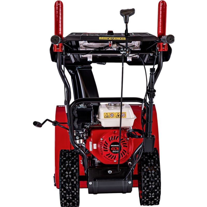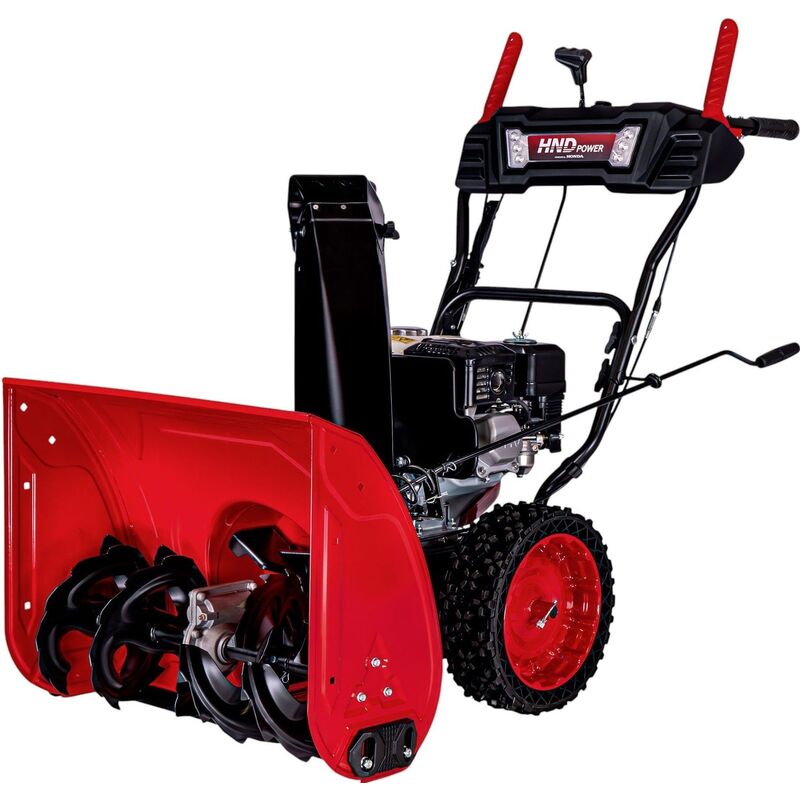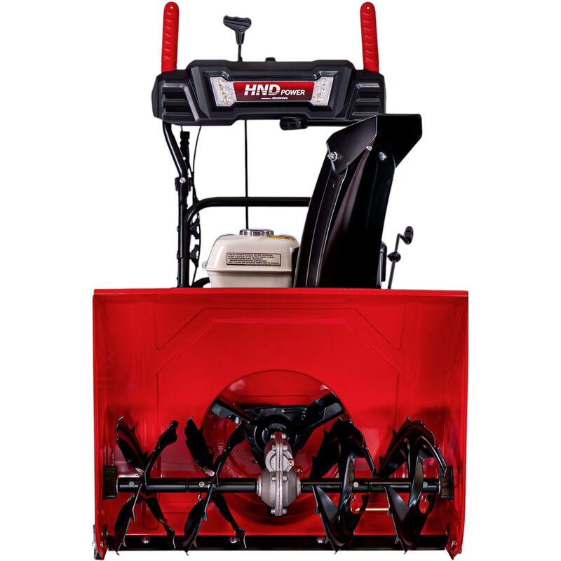 Ширина расчистки составляет 66 см, а высота расчистки — 52 см, что позволяет эффективно справляться с большими объёмами снега. Диаметр шнека — 25 см, а диаметр крыльчатки — 29 см, обеспечивая быстрый и мощный выброс снега. Для комфорта пользователя снегоуборщик оснащён обогреваемыми ручками и светодиодным головным светом. Боковой рычаг управления поворотом желоба выброса снега и регулировка угла наклона желоба позволяют точно контролировать направление и высоту выброса.