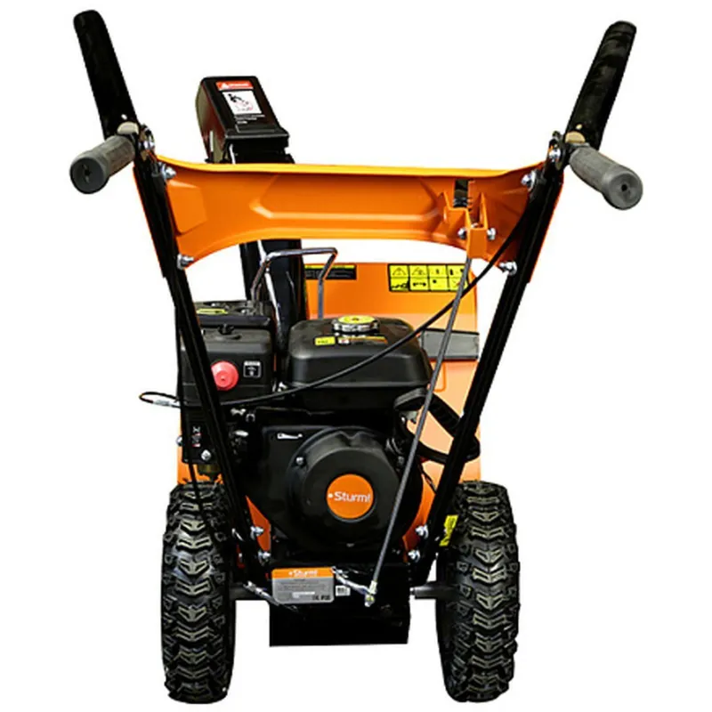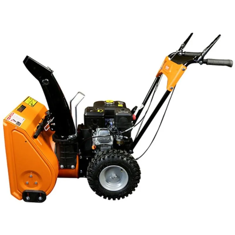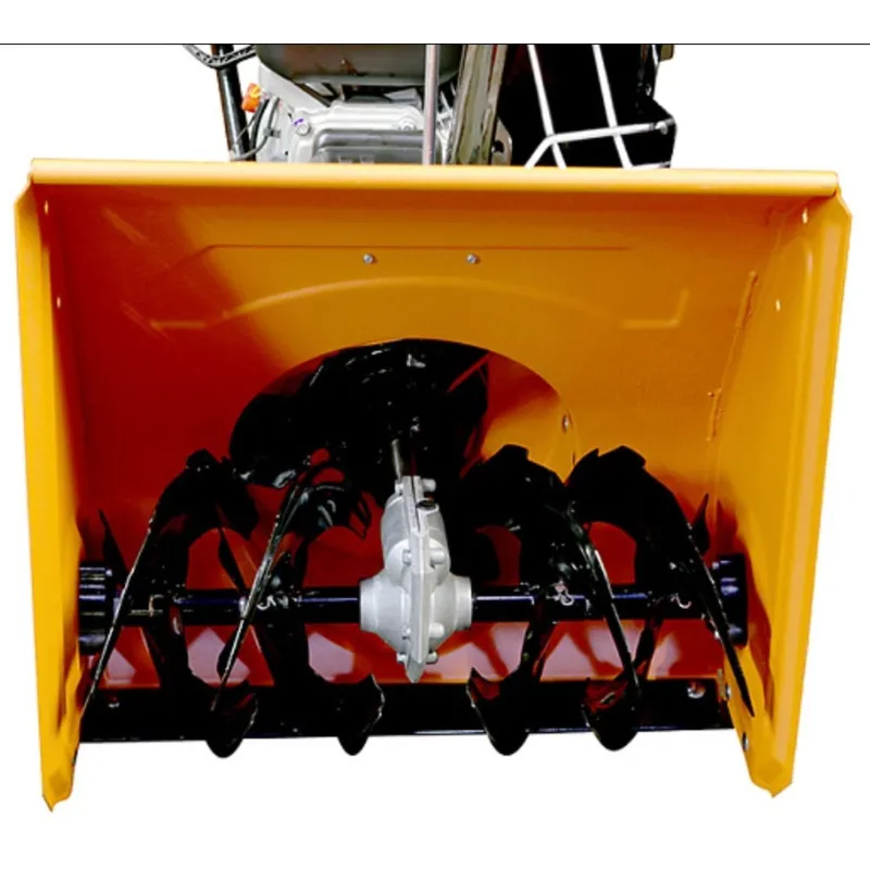 Снегоотбрасыватель оснащён надёжным зимним двигателем марки Zongshen с защитой от низкого уровня масла. Большой ковш 53×51 см с полозьями скольжения обеспечивает внушительную ширину прохода и позволяет убирать сугробы до полуметра высотой. Агрессивные шнеки диаметром 250 мм легко справляются со слежавшимся снегом и настом. Набор скоростей: 4 вперёд и 1 назад — для настройки оптимальной скорости движения снегоуборщика. Большие пневматические колёса с зимним протектором для уверенного движения. Размер колёс: 33×13 см. Марка бензина: АИ-92.