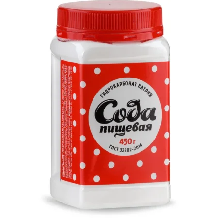 Состав: гидрокарбонат натрия Е500(i) (сода пищевая). Применяется в пищевых продуктах в качестве регулятора кислотности, антислеживающего агента и разрыхлителя.