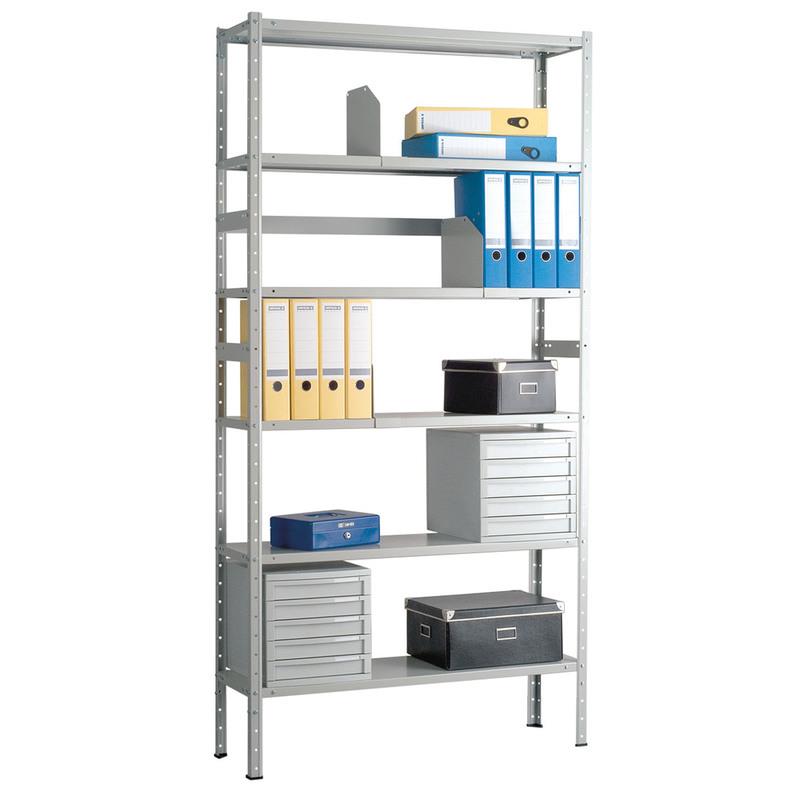 Металлические стеллажи Практик MS, предназначены для хранения документов и грузов в офисе, на складах, в гаражах, в мастерских и дома. Стеллажи имеют современный внешний вид, удобную и надежную конструкцию. Легкая сборка стеллажей с использованием болтового соединения. Регулировка полок по высоте шагом 25 мм. Максимальная распределенная нагрузка на полку 100 кг. Общая нагрузка на стеллаж не более 500 кг. Цвет серый (RAL 7038). Количество полок 6 штук. Дополнительные элементы (разделители, ограничители), а также папки в комплект стеллажа не входят и заказываются отдельно. Изображения товаров на сайте не могут гарантировать точную цветопередачу.