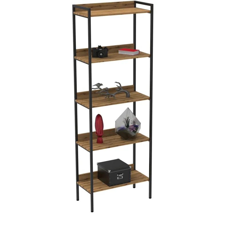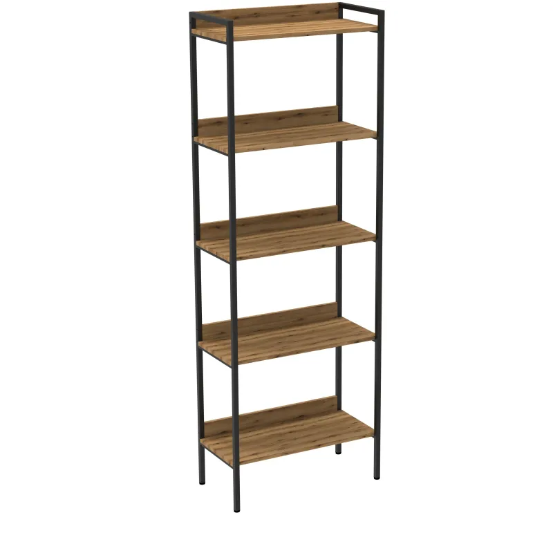 Стеллаж Комус Онега с металлическим каркасом и открытыми полками в стиле Лофт. Каркас из металлической профильной трубы 20×20 мм. Полки — ЛДСП (16 мм). Имеет пластиковые опоры, которые регулируются по высоте, что позволяет адаптировать стеллаж под различные напольные покрытия. Расстояние между полками — 404 мм. Нагрузка на полку до 15 кг. Каждая полка имеет задний ограничитель между стойками.