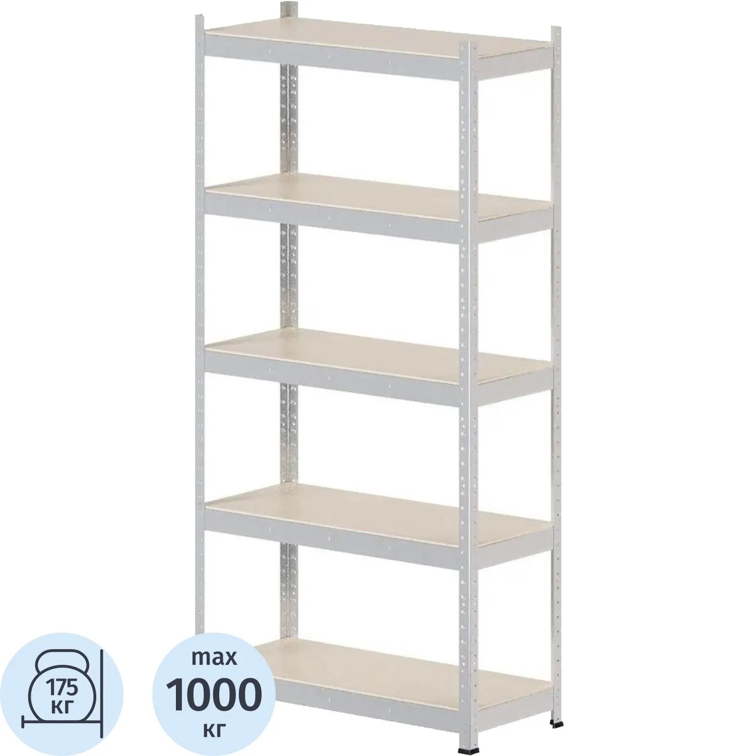 Стеллаж металлический — это недёжное и функциональное решение для хранения различных предметов. Изготовлен из оцинкованной стали, что обеспечивает его долговечность и устойчивость к коррозии. Стеллаж имеет размеры (ШхГхВ) 912×400×1824 мм, что позволяет разместить на нём большое количество предметов. В комплекте 5 полок из МДФ, что обеспечивает удобство использования и возможность регулировки высоты полок с шагом 38 мм. Нагрузка на полку 175 кг. Сборка стеллажа осуществляется без использования инструментов и болтов, благодаря специальным пазам. Это позволяет быстро и легко собрать стеллаж, не повреждая стены и пол. Стеллаж металлический имеет стильный серебристый цвет, который легко впишется в любой интерьер. Пластиковые подпятники на ножках обеспечивают защиту напольного покрытия от повреждений. Он может использоваться для хранения овощей и фруктов на кухне, для размещения обуви в коридоре, для хранения одежды в гардеробе, для организации рабочего пространства в офисе и т.д. Выдерживает общую нагрузку до 1000 кг, что делает его недёжным и устойчивым.