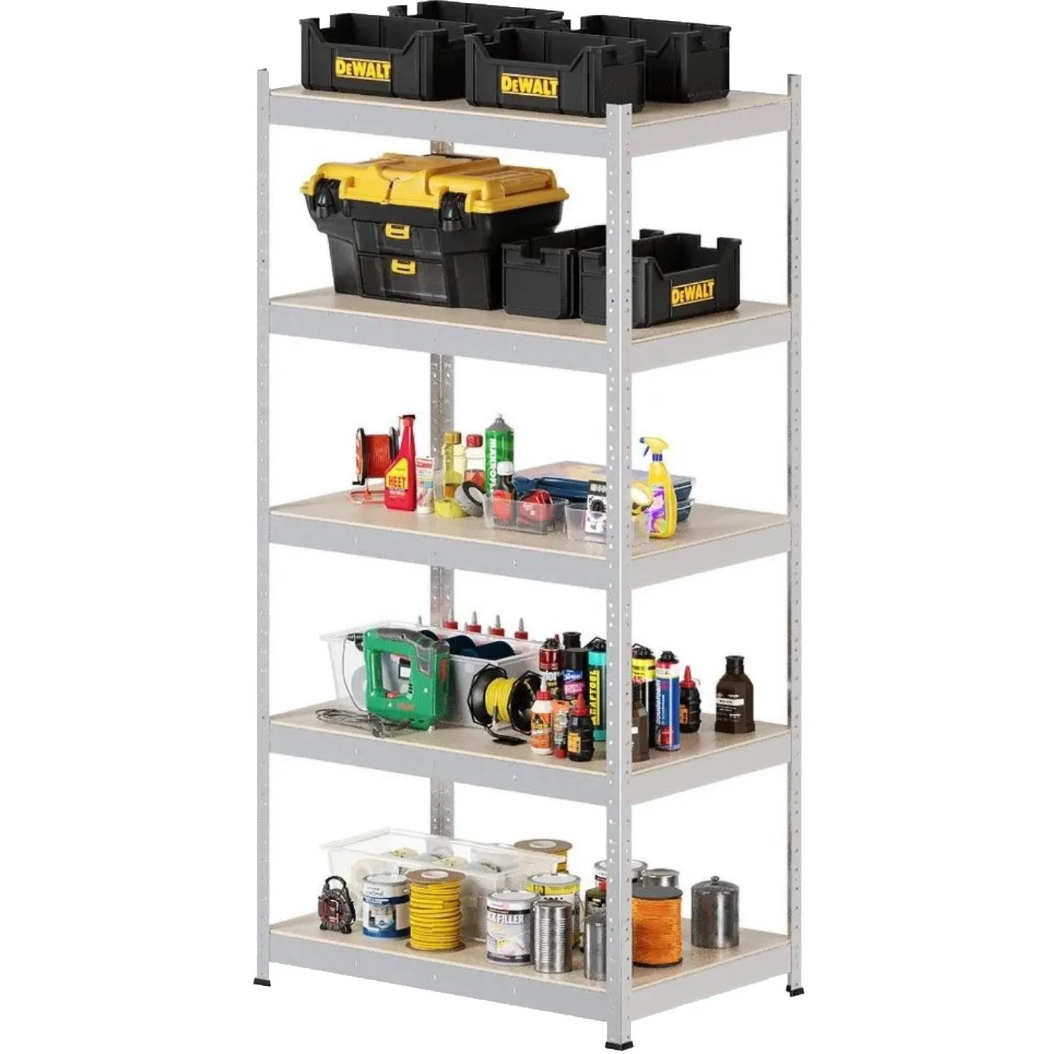 Стеллаж металлический — это недёжное и функциональное решение для хранения различных предметов. Изготовлен из оцинкованной стали, что обеспечивает его долговечность и устойчивость к коррозии. Стеллаж имеет размеры (ШхГхВ) 912×600×1824 мм, что позволяет разместить на нём большое количество предметов. В комплекте 5 полок из МДФ, что обеспечивает удобство использования и возможность регулировки высоты полок с шагом 38 мм. Нагрузка на полку 175 кг. Сборка стеллажа осуществляется без использования инструментов и болтов, благодаря специальным пазам. Это позволяет быстро и легко собрать стеллаж, не повреждая стены и пол. Стеллаж металлический имеет стильный серебристый цвет, который легко впишется в любой интерьер. Пластиковые подпятники на ножках обеспечивают защиту напольного покрытия от повреждений. Он может использоваться для хранения овощей и фруктов на кухне, для размещения обуви в коридоре, для хранения одежды в гардеробе, для организации рабочего пространства в офисе и т.д. Выдерживает общую нагрузку до 1000 кг, что делает его недёжным и устойчивым.