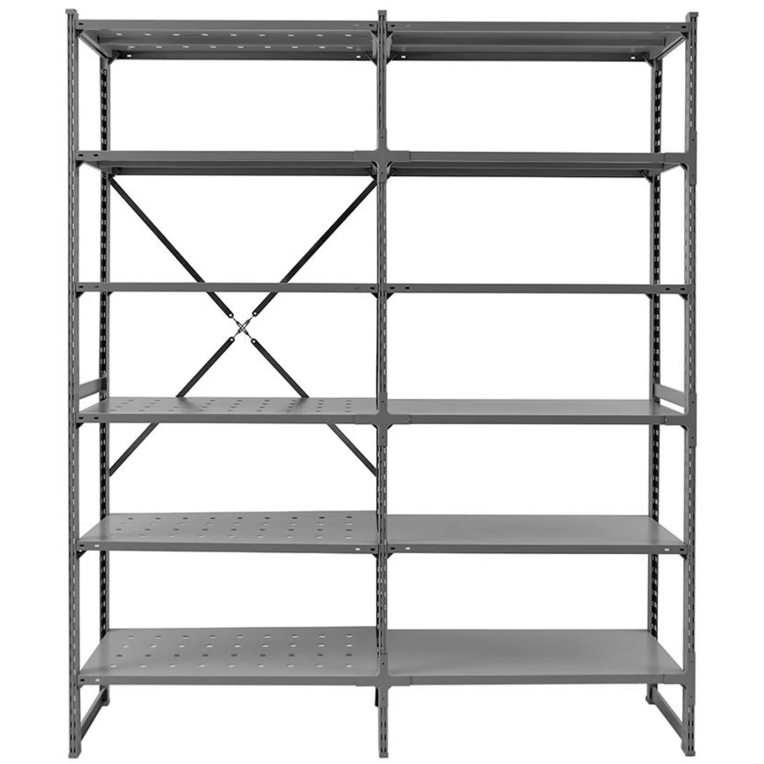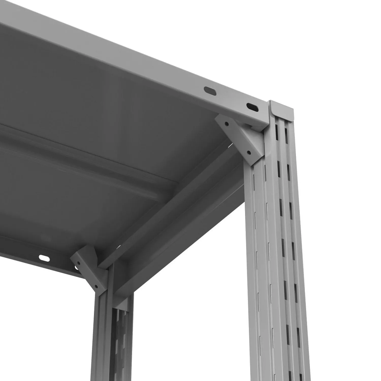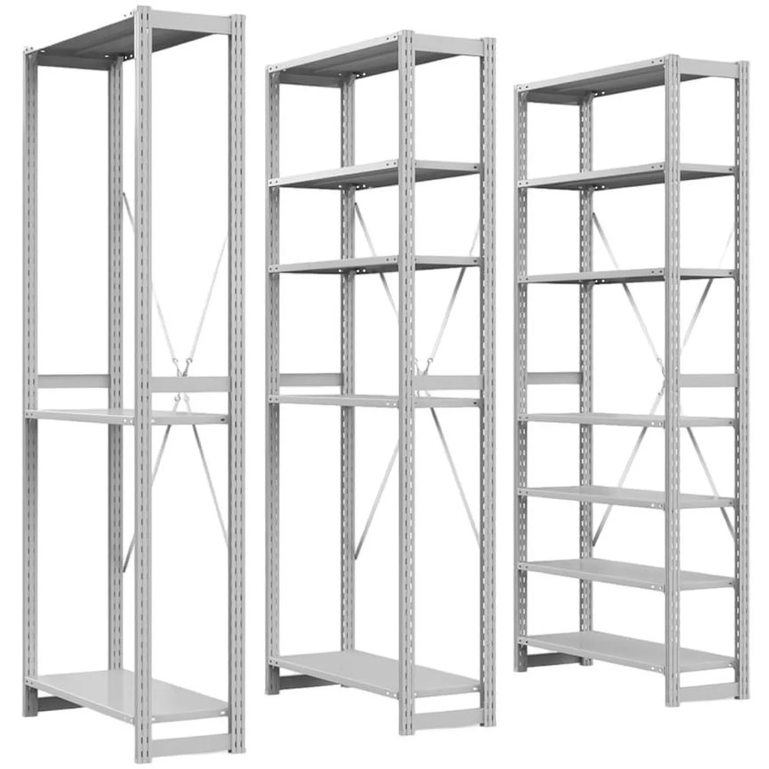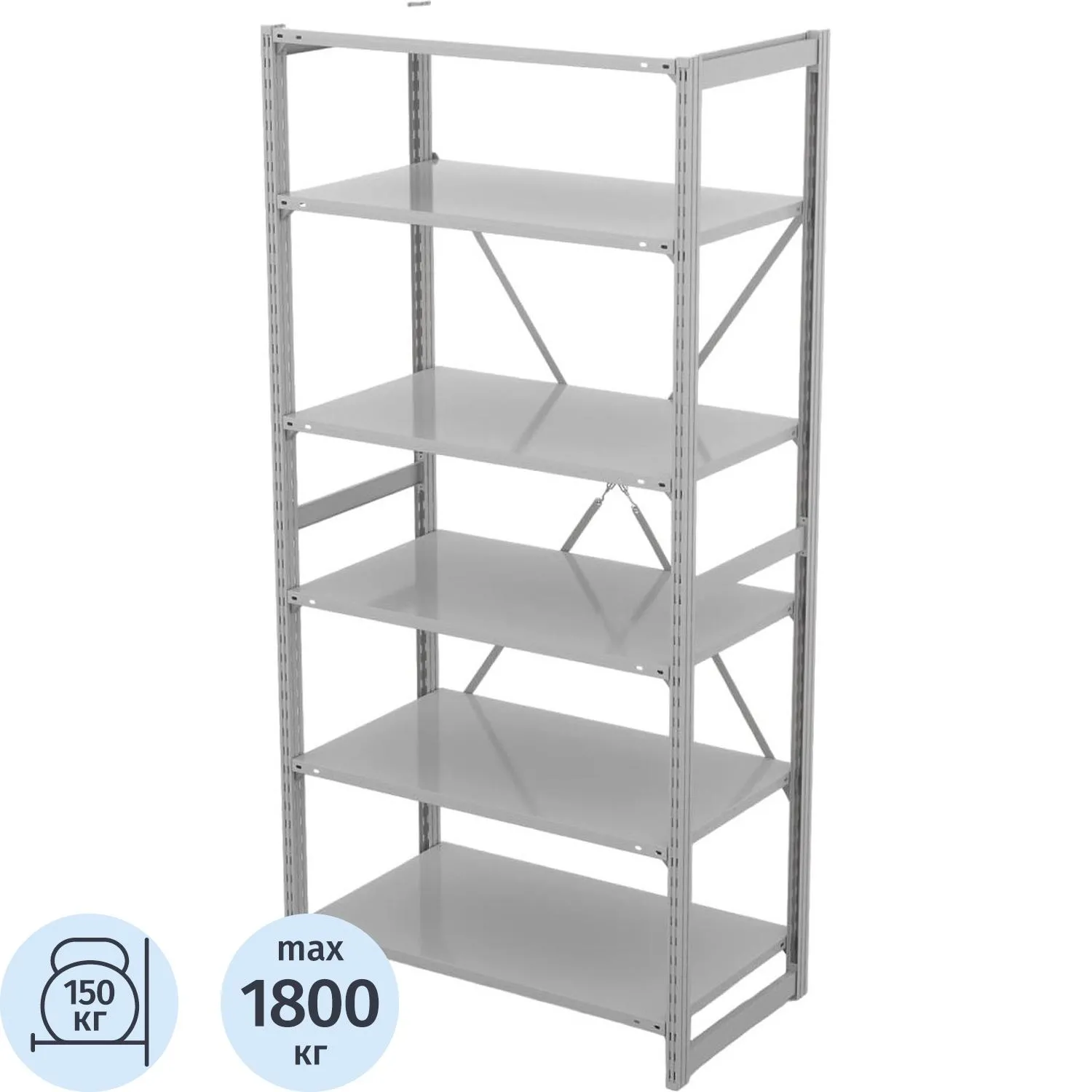 Стеллаж Универсал подойдет для размещения любых штучных грузов — коробок и ящиков, бытовой и офисной техники, упаковок продукции и документов. Будет служить вам на складе и офисе, в архиве, дома и на даче, в гараже и мастерской, в магазине и подсобных помещениях. Полностью без болтовое крепление не требует использования специальных инструментов и позволяет легко и быстро собрать стеллаж. Перфорация стоек позволяет переставлять полки с шагом 44 мм так, как это необходимо. Существует возможность установки множества дополнительных элементов для удобного хранения ваших вещей. Задний экран, вешало, перфорированные полки в комплект стеллажа не входят. Максимальная нагрузка на стеллаж 1800 кг. Максимальная распределенная нагрузка на полку 150 кг. Количество полок — 6 штук. Нет возможности увеличения высоты корпуса. Подпятник встроен в элемент фиксации рамы стеллажа. Может быть дополнен элементом для жесткой фиксации стеллажа к полу.