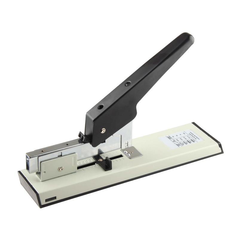 Мощный степлер с максимальной толщиной сшивания бумаги до 100 листов. Глубина закладки листов регулируется от 7 до 70 мм. Пластиковая основа степлера не царапает поверхность стола и предотвращает скольжение. Тип и размер используемых скоб — N23/6, 23/8, 23/10, 23/13. Загрузка скоб в степлер осуществляется фронтально. Размер: 292x100x78 мм. Вместимость скоб — 100 штук.