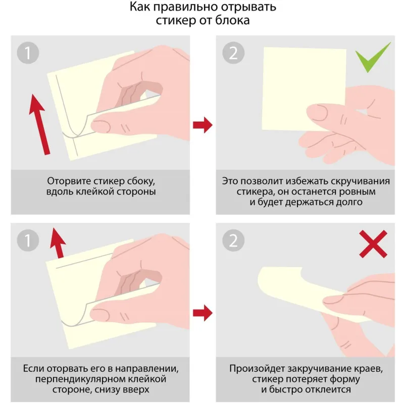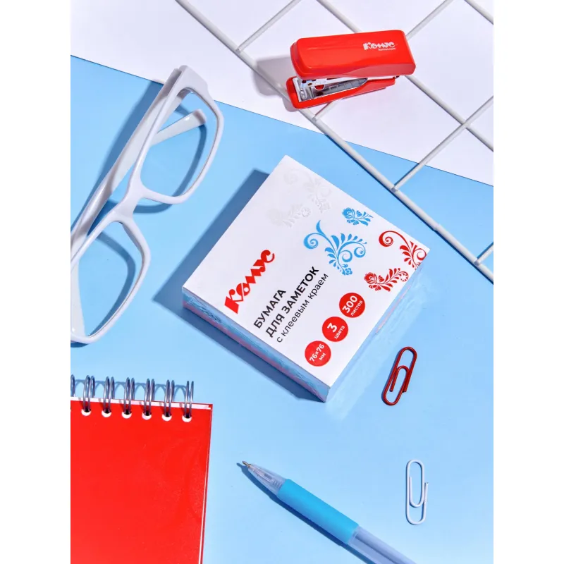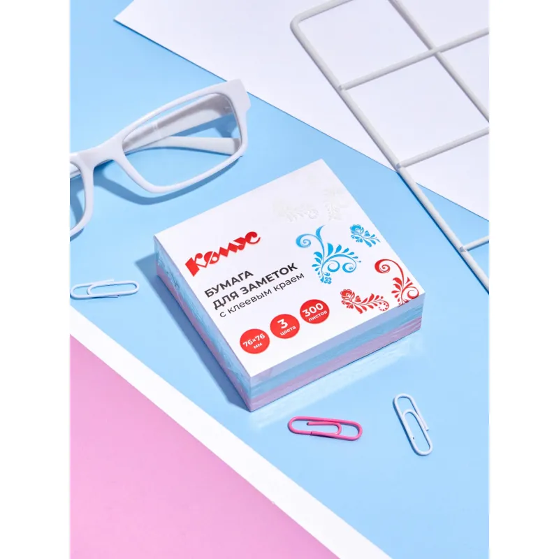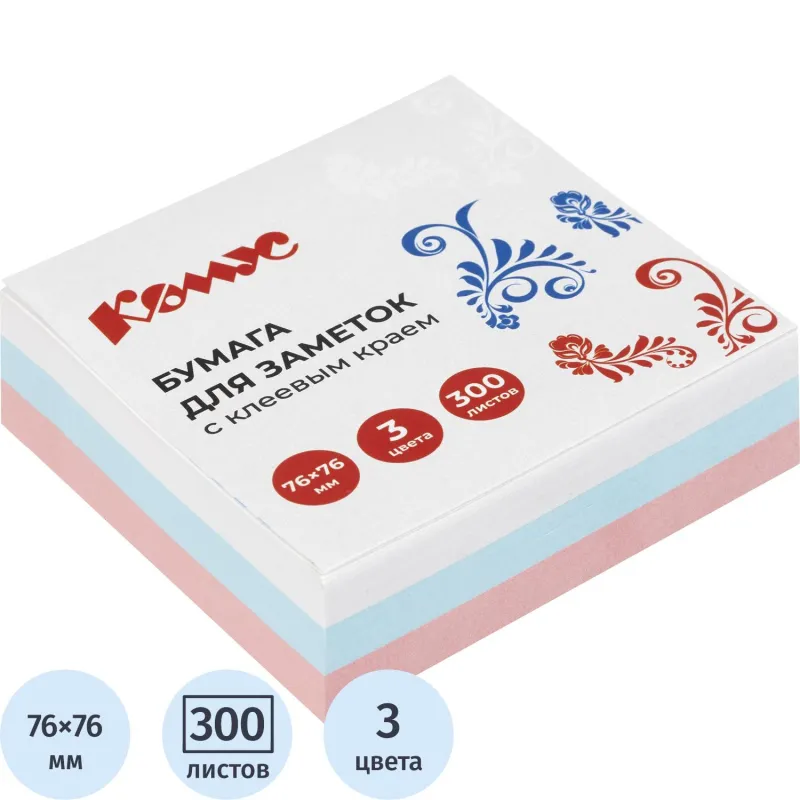 Стикеры Русская серия в формате 76×76 мм, состоят из 300 листов, упакованных в пленку. Стикеры из 3 пастельных цветов. Плотность бумаги: 60 г/кв.м. Клейкий слой — 18 Н/м. Идеально подойдут для сотрудников творческих профессий и руководителей: рекомендуются для использования в процессе совещаний, обучения, мозговых штурмов. Длина клейкой стороны 76 мм. После удаления бумаги на поверхности не остается следов клеевого состава, лист можно крепить повторно. Чтобы увеличить срок службы стикеров, пожалуйста, следуйте рекомендациям: 1) Отделять стикер от блока следует вдоль клеевой полосы. Так можно избежать скручивания и последующего отклеивания стикера. 2) Прежде чем наклеивать стикер, убедитесь в отсутствии грязи и пыли на поверхности. На чистой поверхности срок службы клеевого слоя более продолжителен.
